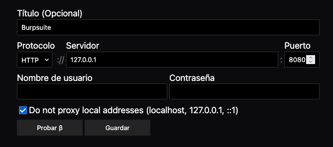 Por defecto estará vació, por lo que procedemos a crear uno nuevo, en este caso, uno para el puerto 8080 que es el default de burpsuite.