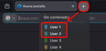 Ahora, ya podemos abrir múltiples pestañas en el navegador y asignar un contenedor para cada una.
