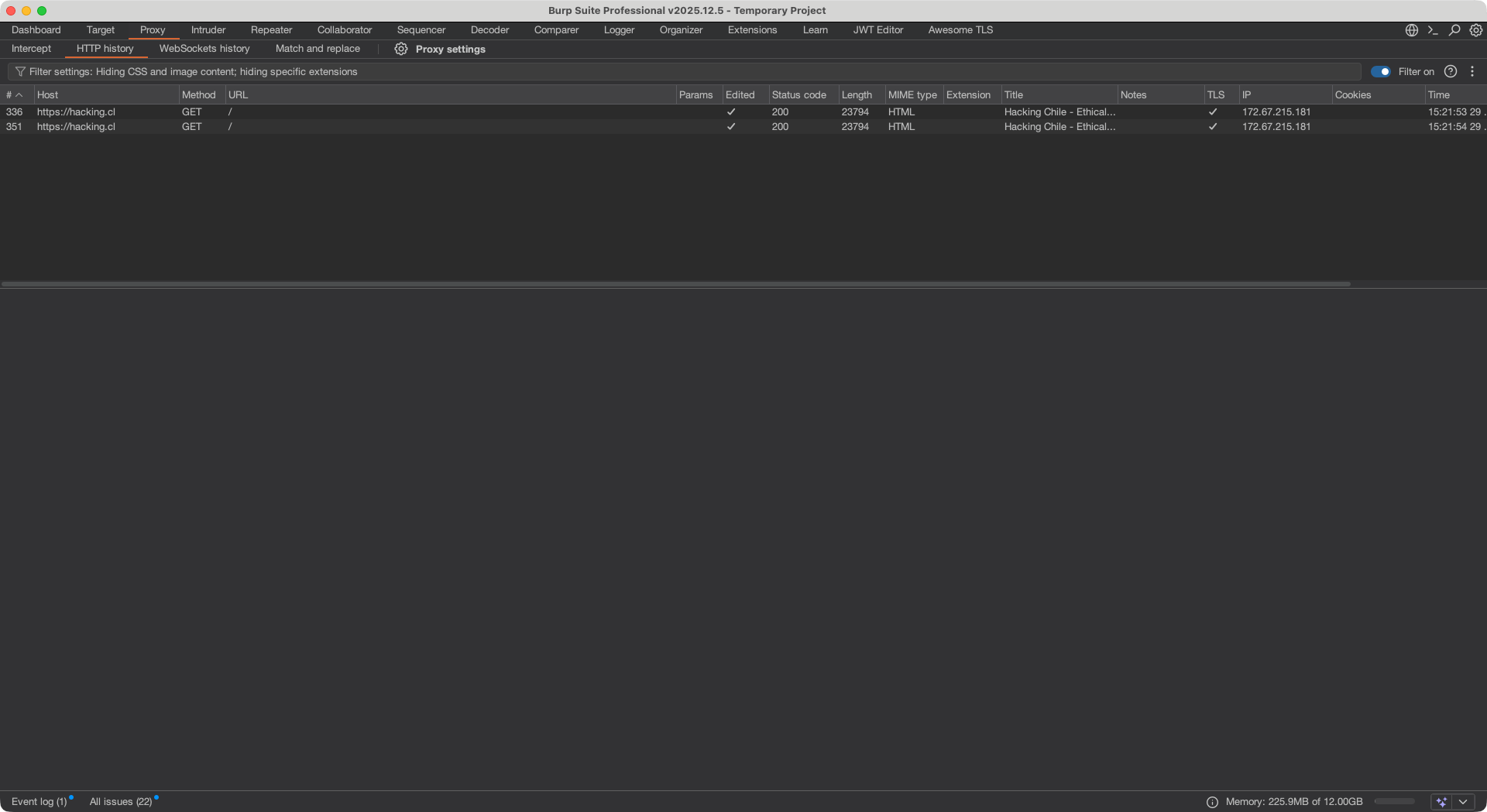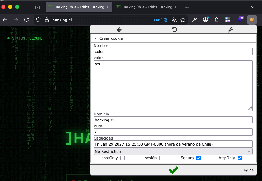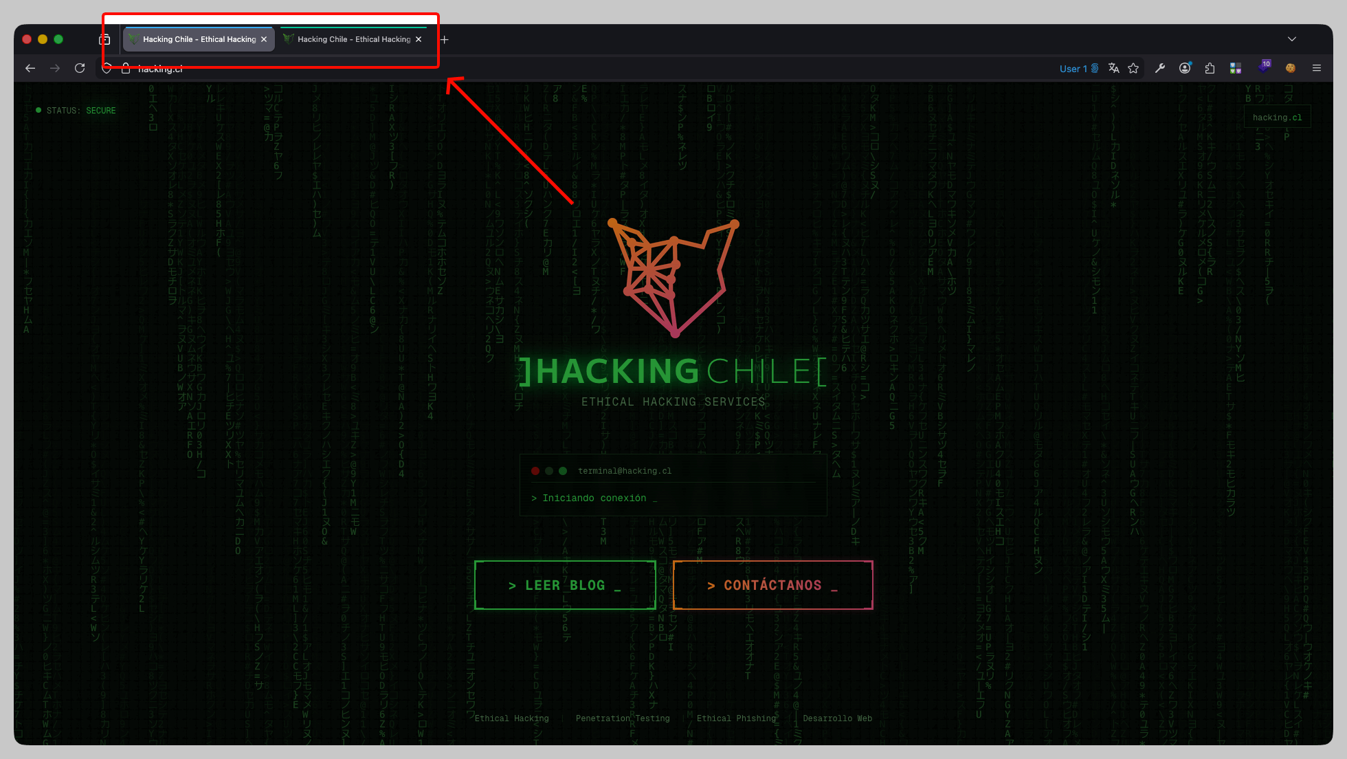 Accedimos al sitio web de Hacking Chile en ambas pestañas para la demostración.