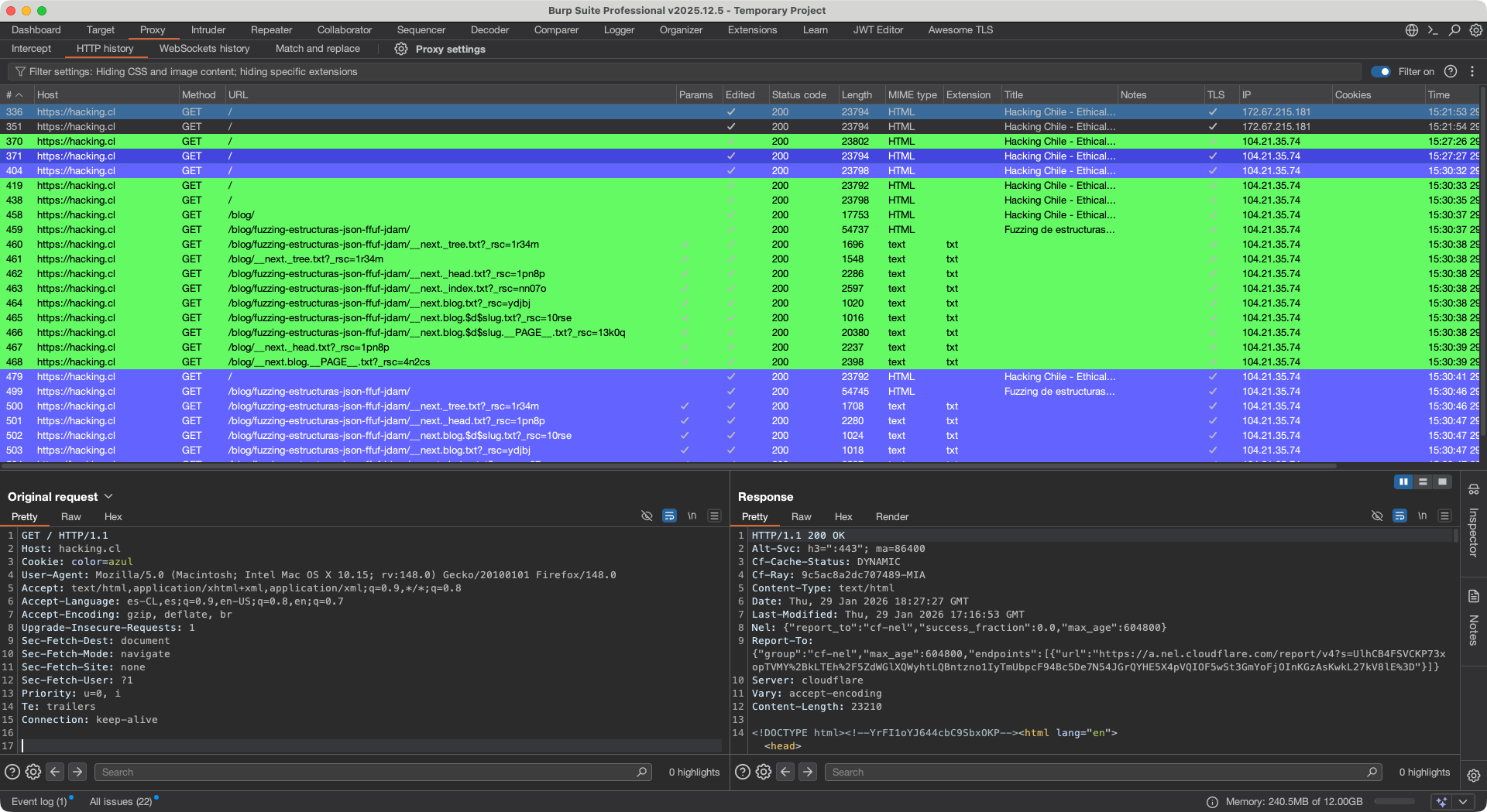 Finalmente, vamos a burpsuite, buscamos las request y creamos una regla de resaltado con la extensión de burp.
