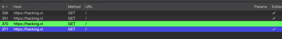 Finalmente, vamos a burpsuite, buscamos las request y creamos una regla de resaltado con la extensión de burp.